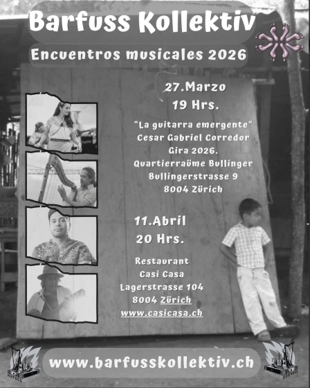 Am 27. März 2026 spielen wir um 19:00 Uhr im Quartierraum Buelingerstrasse 9, 08004 Zürich, mit dem Gitarristen César Corredor im Rahmen seiner Tournee 2026.